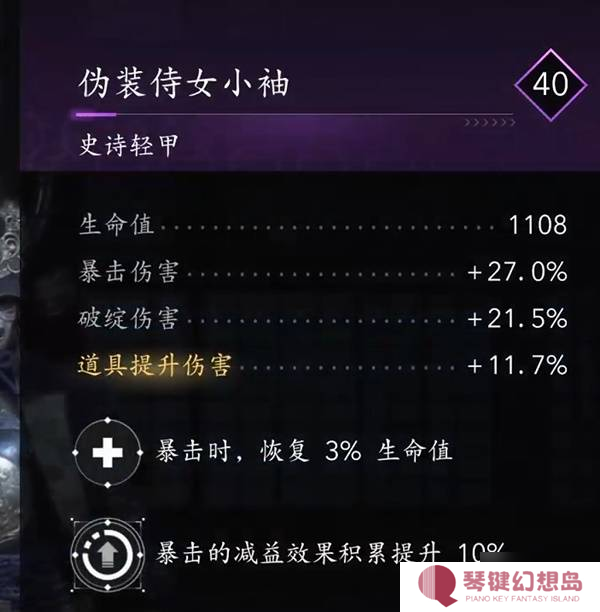 最终成型会十分可怕!拥有破绽时以上的暴击率,高额暴击伤害,持续流血结算。