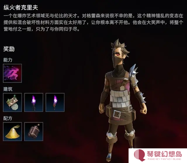 一个在爆炸艺术领域无与伦比的天才。对格雷森来说很不幸的是,这个精神错乱的变态在提供和混合破坏性材料方面实在太好用了,让你根本离不开他。他会在大小声中,将整个营地付之一炬,只为了与你同归于尽。