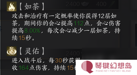 3、后期还能用【如荼】,但前期自身面板太低,【如荼】要有一定的会心基础效果才能更好。