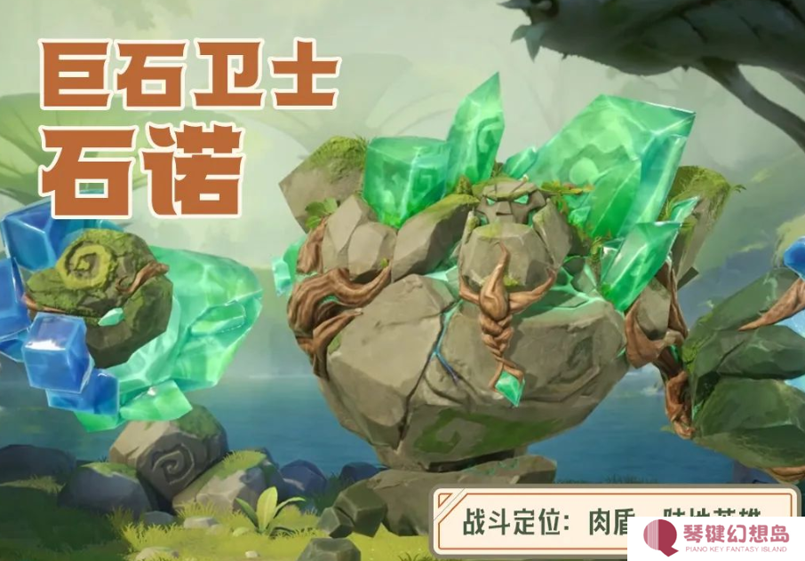 他是诞生于百年以前的森林守护者,尽管身材魁梧,内心却充满了温柔与爱意。作为战场上的坚不可摧肉盾,他拥有一个令人惊叹的被动技能当累积所受伤害超过生命上限时,他会召唤并丢出一个小石头人攻击。这个招式会优先瞄准半径内的最远敌方单位,并继承石诺的攻击力和生命上限,展现出非凡的战术智慧。他的怒气技则是将身边攻击力最高的敌人抛掷到最远半径处,在落地时会对范围内的所有敌人造成攻击力高达的伤害,并且持续的眩晕效果,展现了强大的团队支援能力。